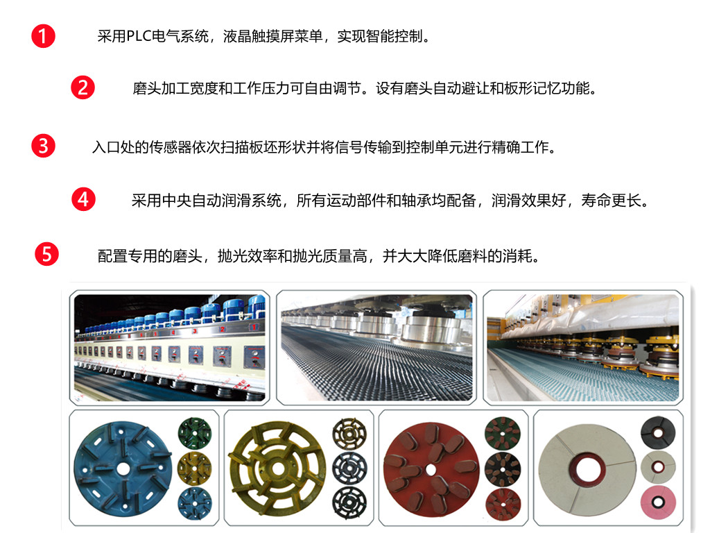 2) Processing width and working pressure of grinding heads can be adjusted freely .