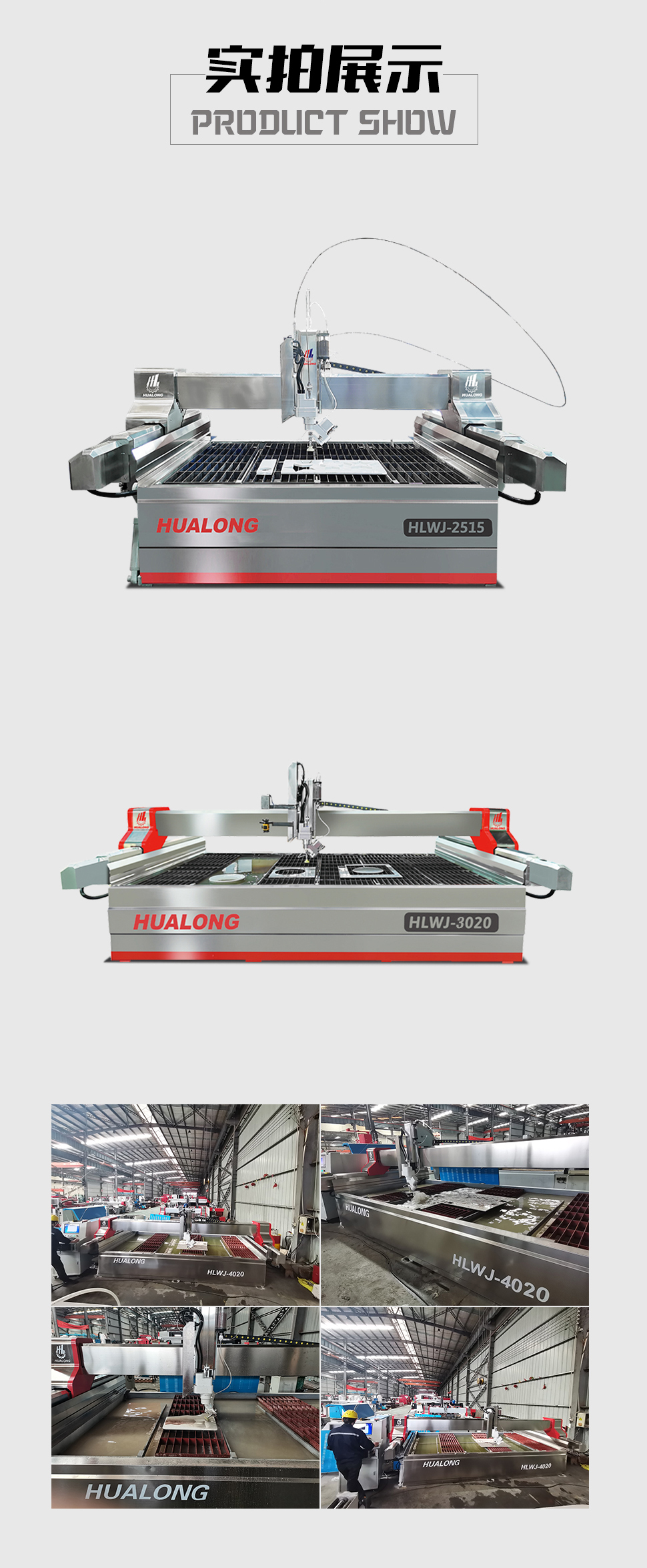 HLWJ-2015/3020/4020 三軸/五軸高壓(yā)水刀(dāo)切割機,是(shì)一種工業切割機(jī)器,能夠使用極高的高壓水(shuǐ)射流或水與(yǔ)磨料物質的混(hún)合物切割各種(zhǒng)材料(liào)。切割金屬、石頭或玻璃等硬材料,而純水射流和純水切割是指不使用添加磨(mó)料的水射流切割,通常用於木材或(huò)橡膠等較軟的(de)材料。