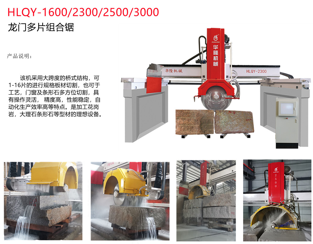 HLQY-2500 龍門多片組合(hé)鋸是一款經典且實用的橋(qiáo)梁鋸,可用於將石塊切割成薄片或厚片。它采用西(xī)門子 PLC 控製係統,配有油浸式直(zhí)線導軌(guǐ)。最多可安裝 18 片薄鋸片。